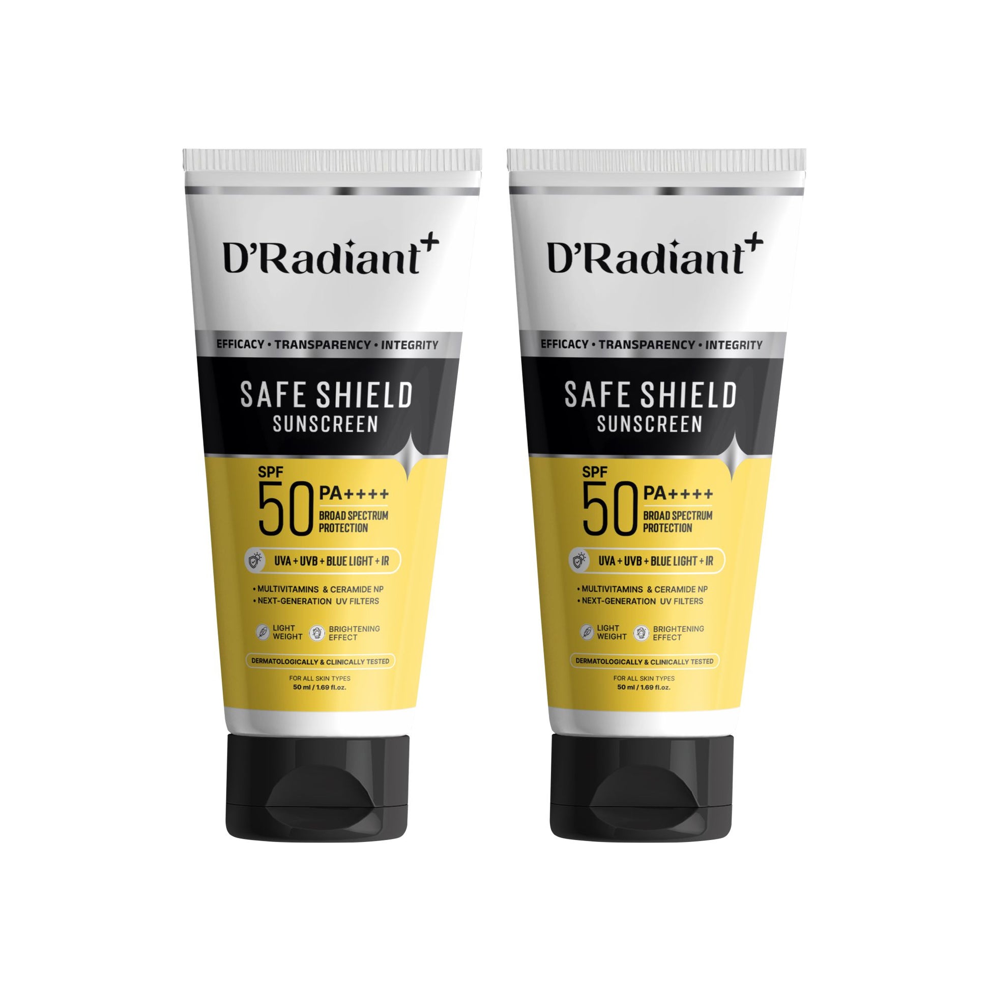 Twin Pack Sunscreen SPF 50 PA++++ | Broad Spectrum UVA, UVB, Blue Light, Infrared Protection | Modern Uv Filters | Lightweight, Brightening Effect | Dermatologically & Clinically Tested (50ml)
